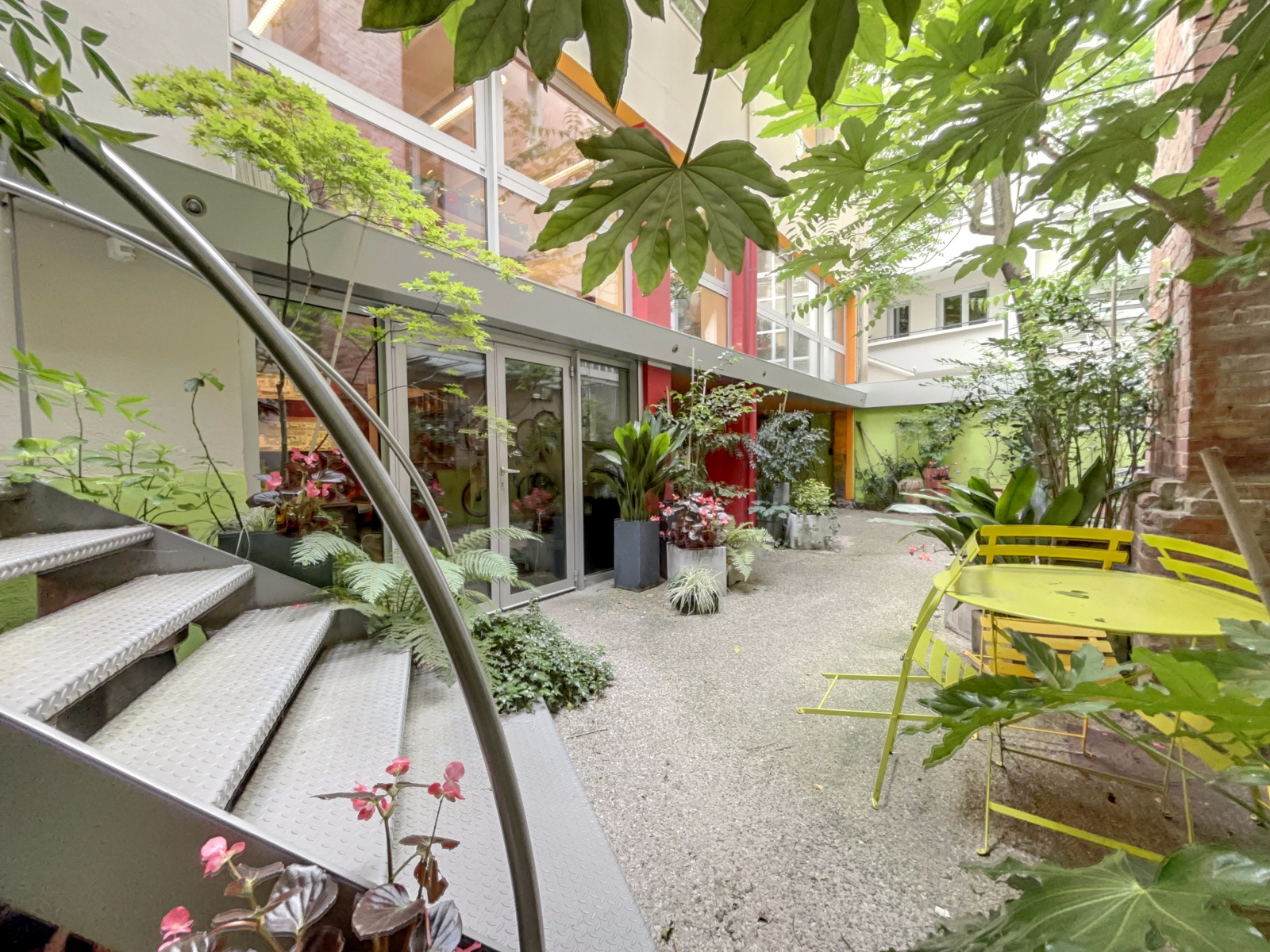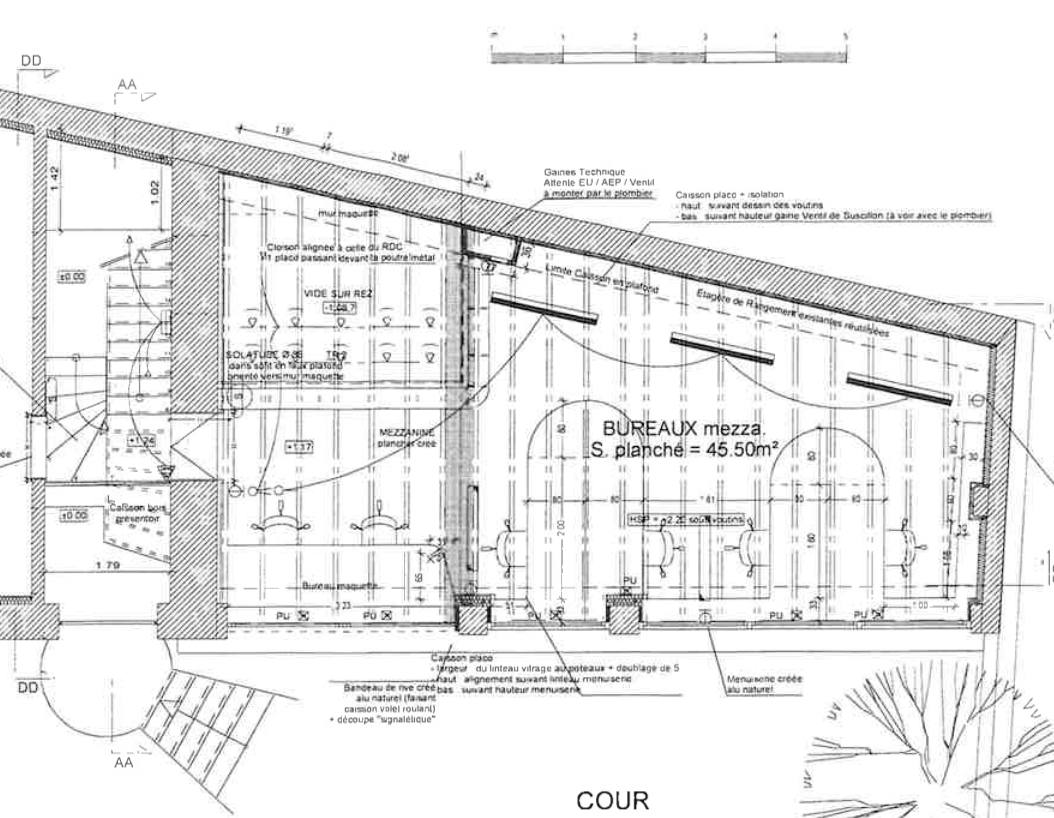 Bureaux aménagés au cœur de Championnet / Caserne de bonne. En arrière-cours très au calme avec jardin privatif. Espace cuisine, détente, salles de réunion. Interphone, surveillance 24/24, accès par badge et digicode, détection Incendie, alarme incendie. TRAM et commerces.