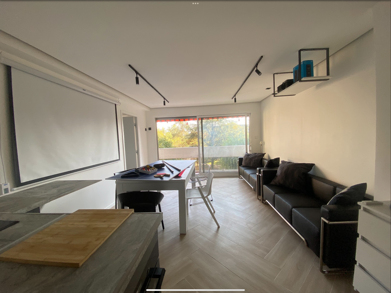 Un grand balcon filant sur l’ensemble de l’appartement vous permettra de manger en terrasse tous ensemble ! Le balcon est dans le prolongement du salon! La guirlande guinguette et son salon d’extérieur sauront accompagner vos instants de convivialité
