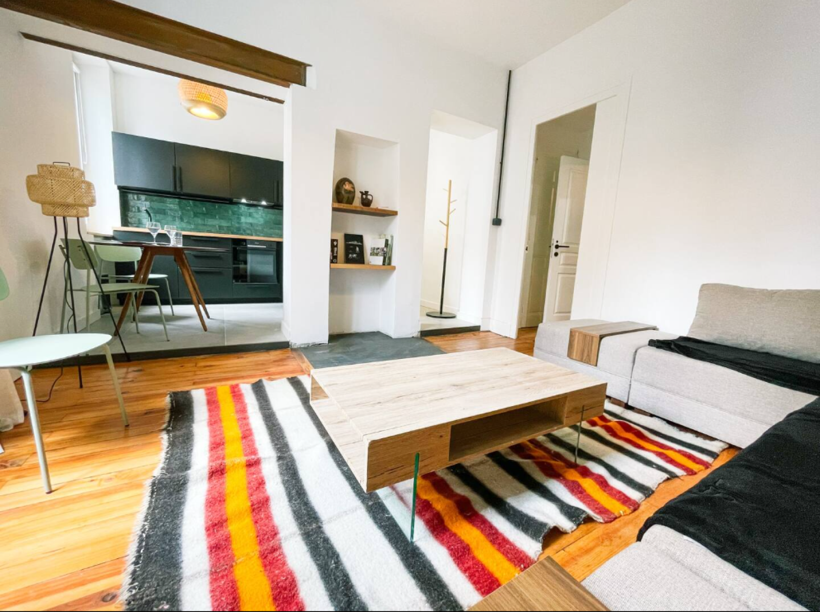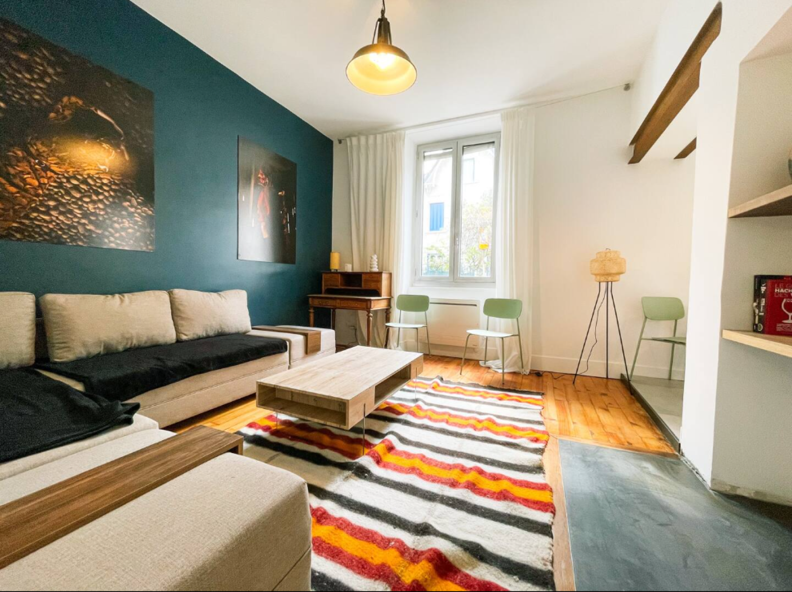 Quartier Chorier / Mozart dans petite rue très calme, agréable 3 pièces refait a neuf + cuisine équipée, belle pièce de vie avec séjour ouvert sur cuisine équipée, 2 belles chambres avec parquet, une salle d'eau avec douche a l'italienne. WC. Exposition EST / OUEST, accès non privatif jardin avec terrasse copropriété. Cave. Local vélo. Proches commerces, écoles, gare, transport et TRAM.