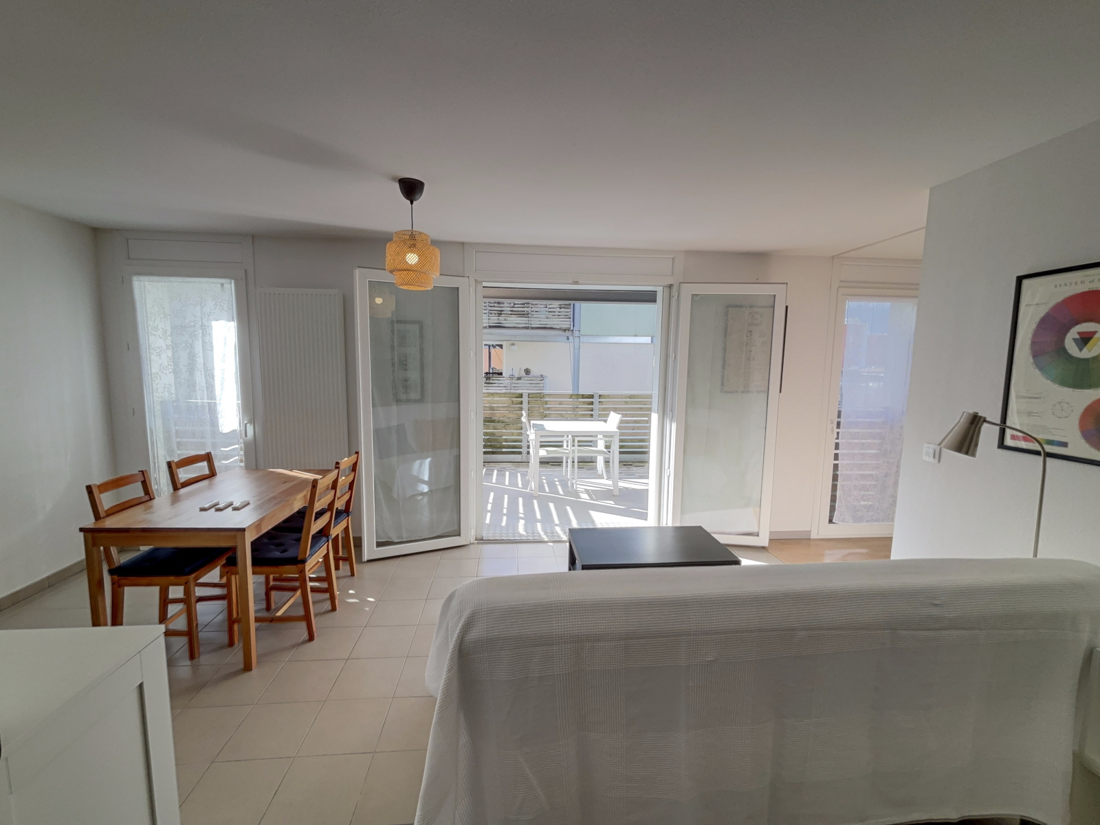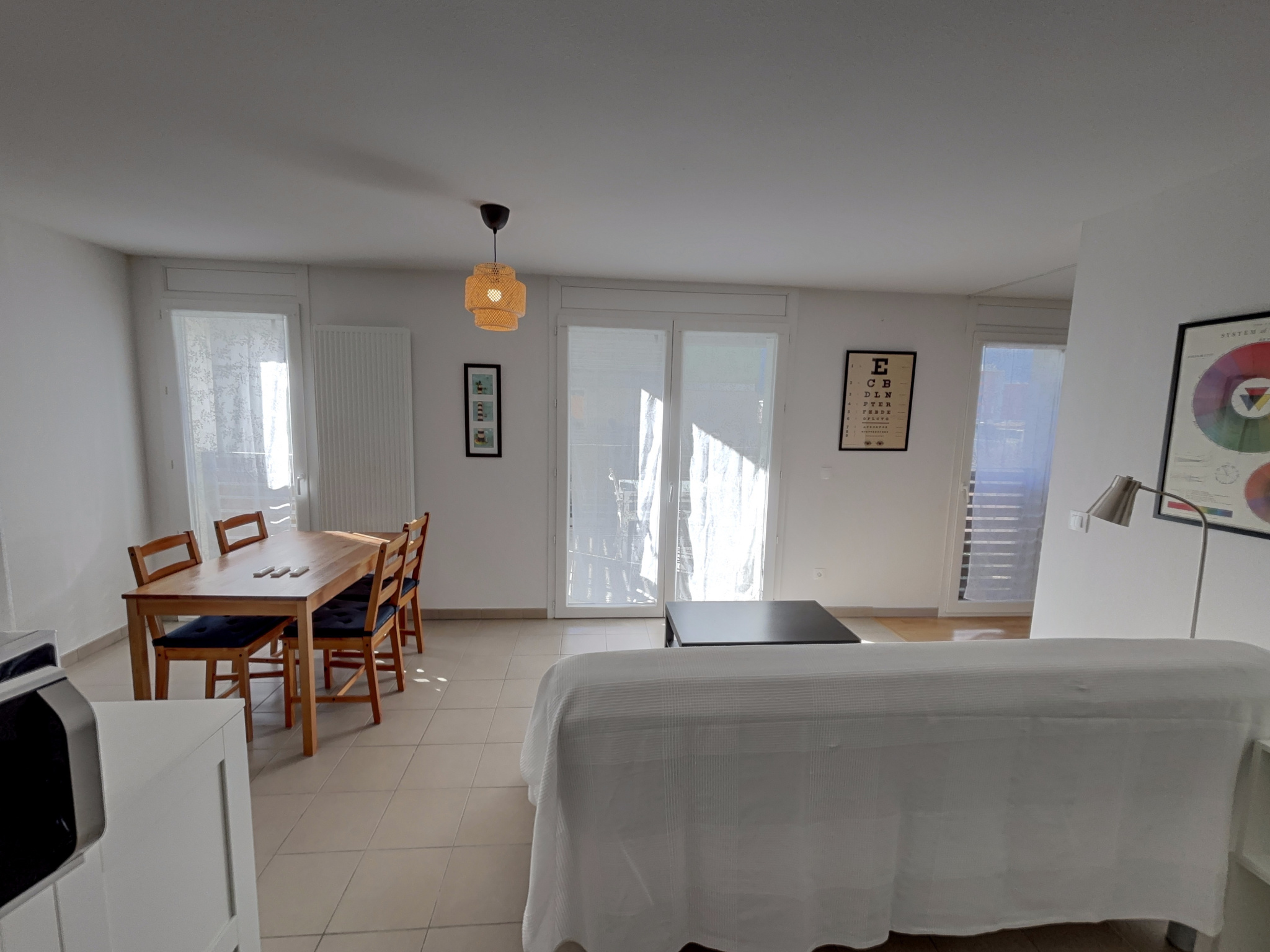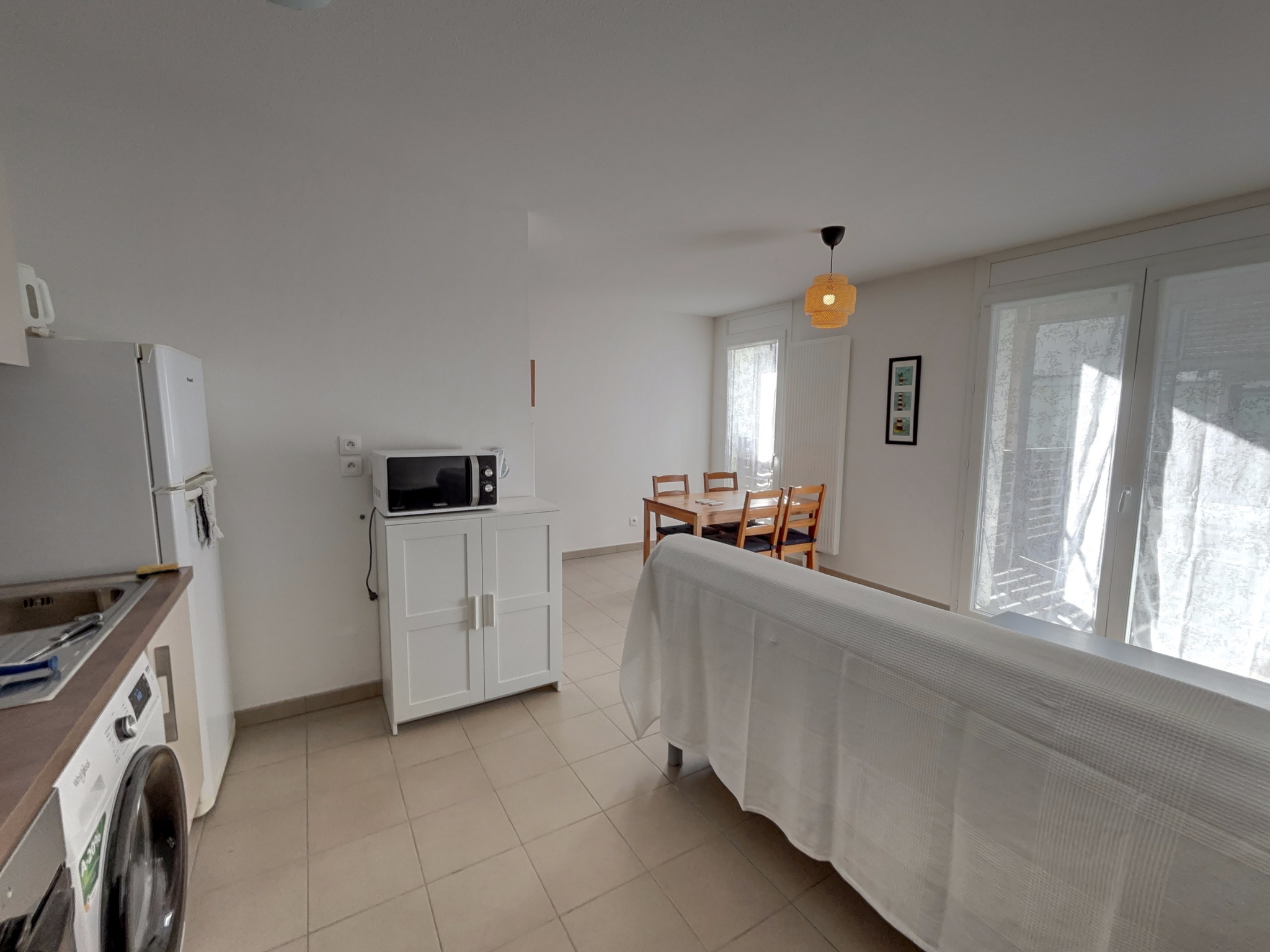 T1 meublé 36 m2 centre caserne de Bonne. 4ème étage / 5 avec ascenseur. Copropriété sécurisée et très calme avec vue. Entrée avec placard - Espace de vie avec cuisine ouverte sur grand balcon Ouest. 3 portes fenêtres avec stores éléctriques. SDE/WC - Cuisine équipée - Chambre - Cave et local vélo fermé - Grande salle + térrasse communes - Gardien - Proche de toutes les commodités.