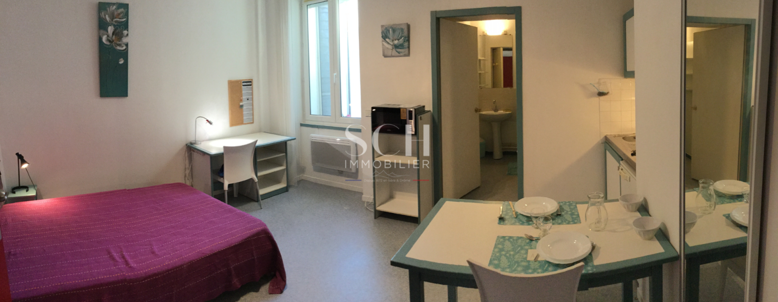Libre le 1er JUILLET 2025 - Résidence de standing LE SAVOIE - 52 Boulevard Alsace Loraine – Face à la Gare et du tram - Studio meublé 20 m². Entièrement meublé. Dernier étage au 5ème. 500 m. Place Victor Hugo et du Tram, 500m de la Place Grenette et du secteur piéton. IUT/ Ecole de Commerce / GEM / INP / Polytech / Ecoles d'ingénieur / médecine PACES. A 2 arrêts de tram (Place Victor Hugo, Lycée Champollion, Place Grenette, etc…) ou 5’ à vélo / 10’ à pied. Au calme sur cours. Ascenseur. Accès sécurisé avec Digicode / Badge Vigik. Salle de sport WIFI possible. Laverie (lavante-séchante) aux étages. Kitchenette équipée (frigo, plaque de cuisson, micro-onde, vaisselles, couverts, ustensiles complets, casseroles, poêles, etc...). Penderie / placard de rangement. Pièce principale avec grande fenêtre. Salle de bain avec douche, WC et meuble-vasque. Chauffage électrique neuf. Soumis à l'encadrementd des loyers. 495 € (dont 30 € charges mensuelles avec eau froide). 2 mois de caution (hors charges). Honoraires d'agence 386,40 €.