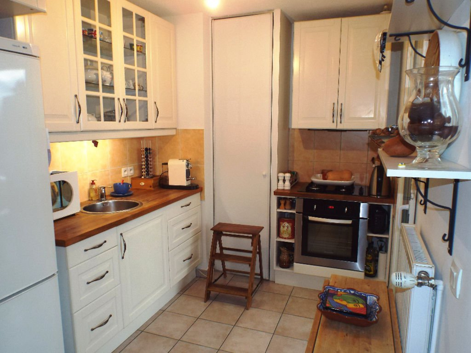 accès terrasse.Placard avec chaudière. Four électrique et plaques gaz restent
