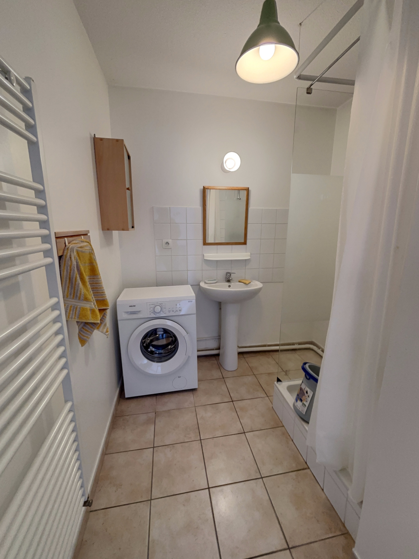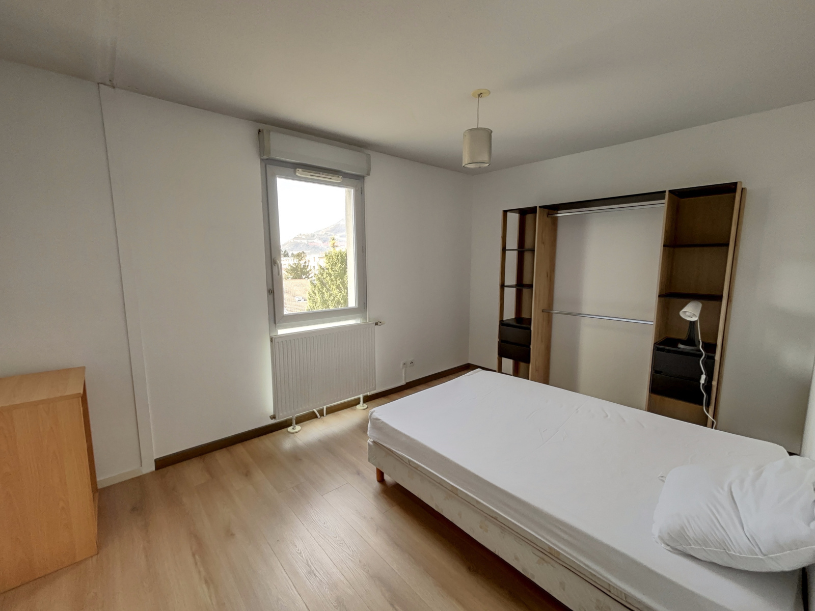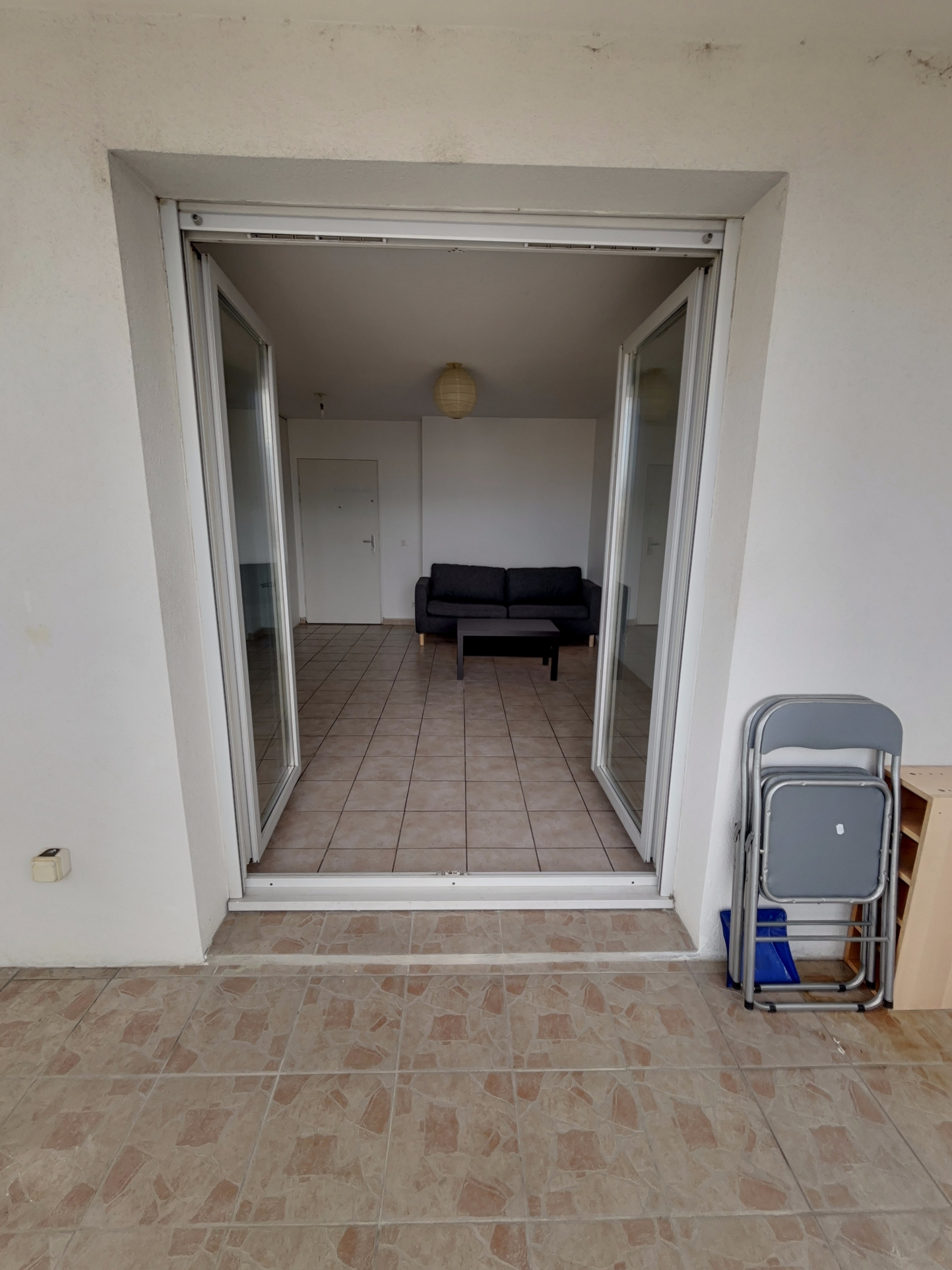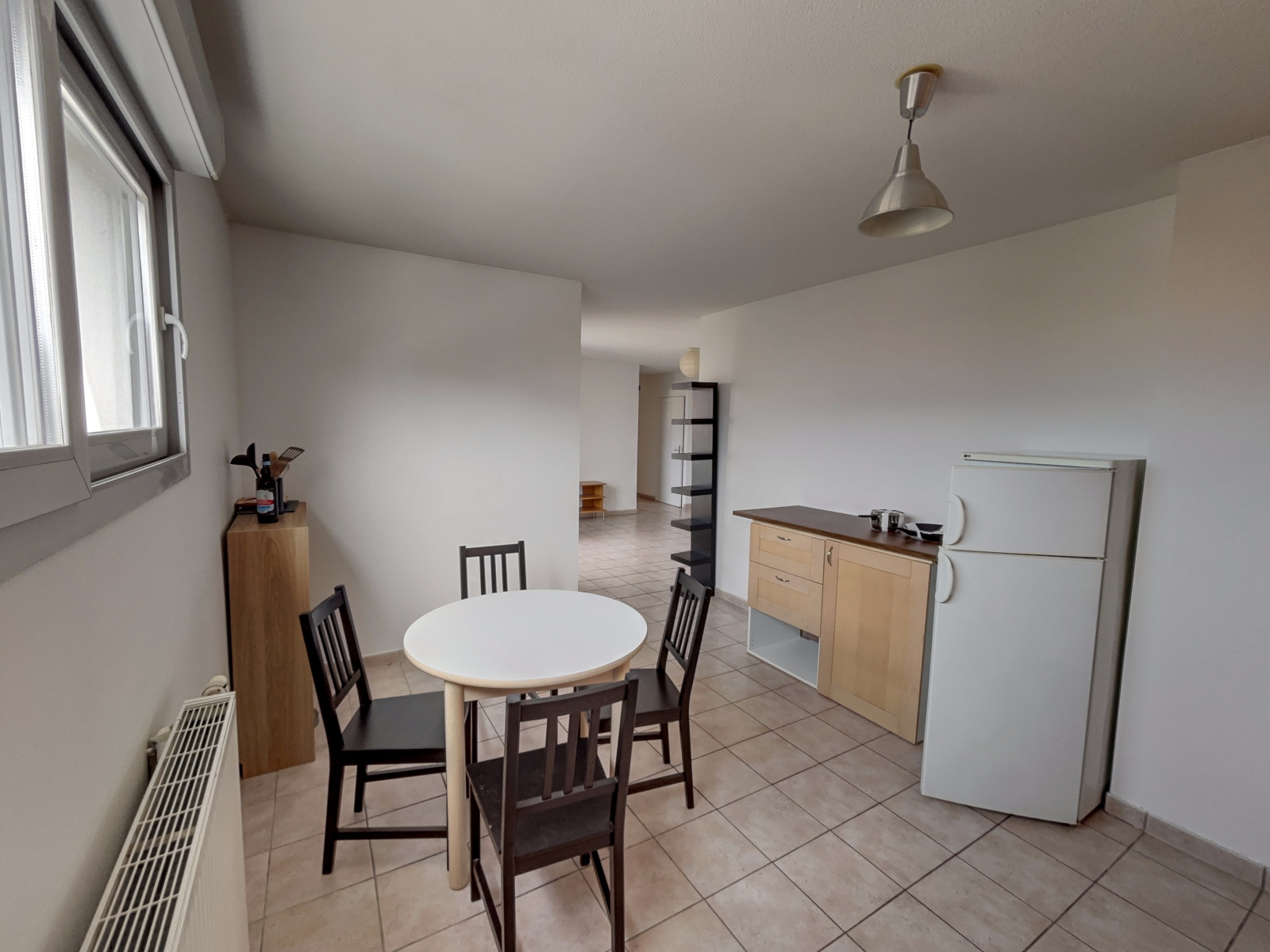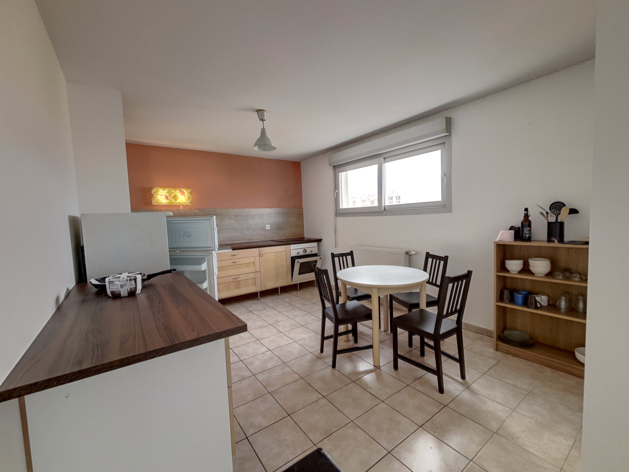 T2 meublé 55 m2. Avant dernier étage (3/4). Copropriété au calme. Pièce de vie avec baie vitrée donnant sur une terrasse ouest de 12 m2 avec électricité, grande cuisine équipée, placard, SDE, WC et chambre. Huisseries PVC et volets roulants électriques. Proche transport, école et commerces.