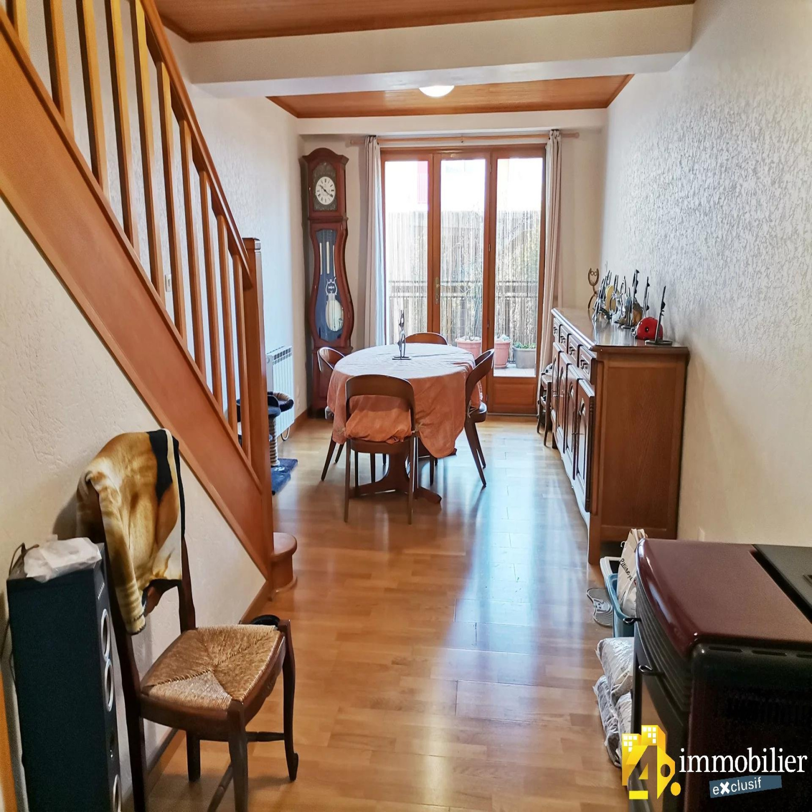 En exclusivité sur Eybens le Bourg, votre agence SCH IMMOBILIER (4% immobilier EYBENS) vous propose cette maison de ville de 89 m² de type 4 pièces + cuisine comprenant 2 chambres à l'étage + 1 studio au rez de chaussée relié au reste de l'habitation. Ce bien a été entièrement rénové en 2014 (y compris toiture et isolation). Son agencement bien étudié permet de séparer facilement, si besoin est, le studio du rez de chaussée du reste de la maison. Le rez de chaussée possède une terrasse de 19 m² et le 1er étage une terrasse de 8 m². Le chauffage est électrique par radian et il y a un poêle à granulés dans le séjour. Parking privé sur parcelle commune avec le voisin. Taxe foncière 1750 euros