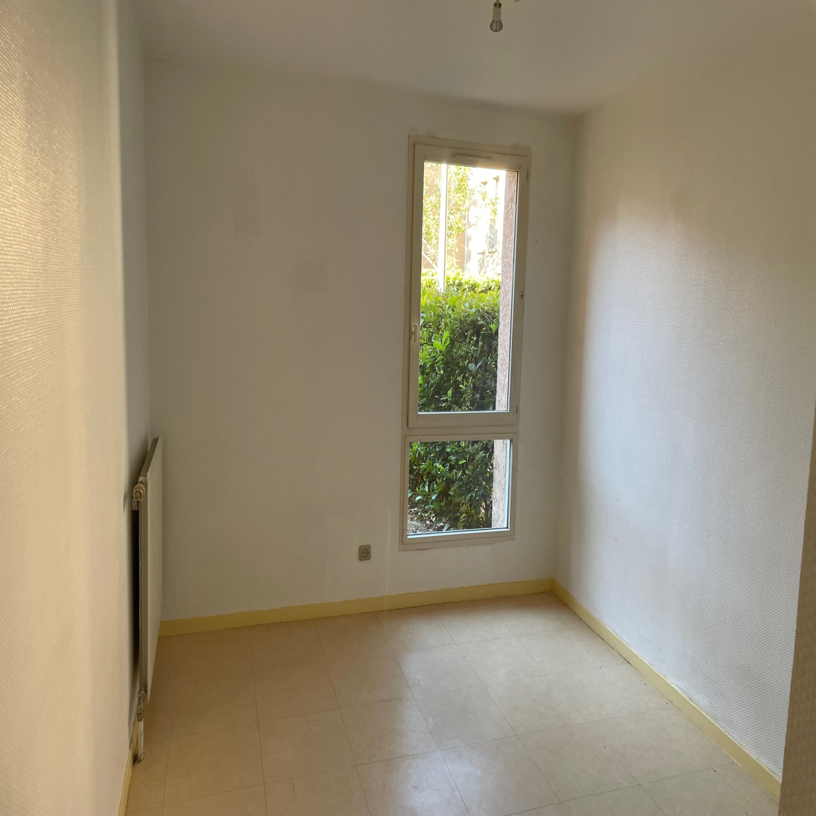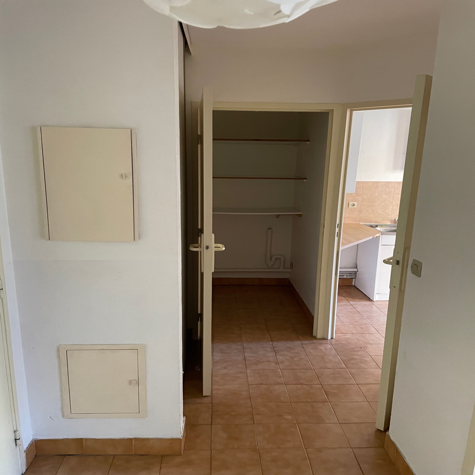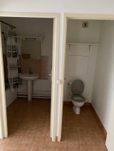 Entrée, placard, cuisine semi-ouverte, séjour, SDB, WC séparé et 1 chambre (grande pièce de vie possible en réunissant la cuisine et le salon).