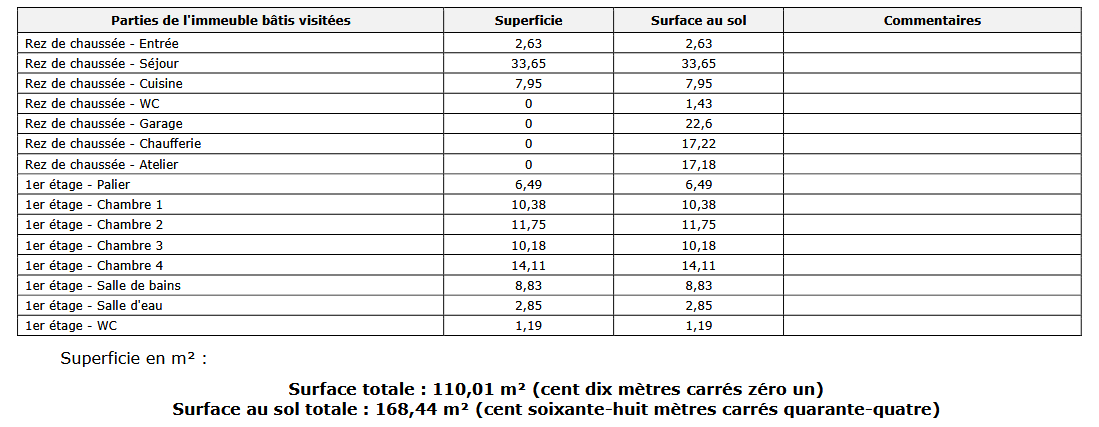 Maison individuelle de 110,01 m² habitable (d'une surface sol de 168,44 m²) sur une parcelle de 600 m² (numéro 40 / section D, lot n° 18), construite en 1960.