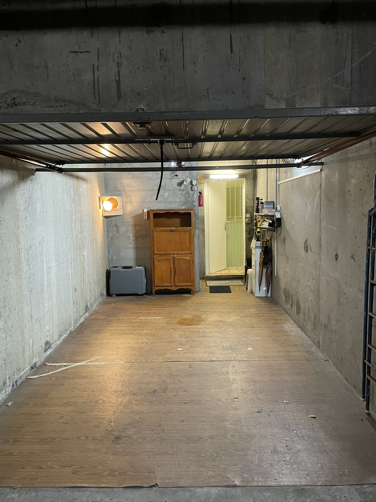 Grand garage fermé avec cellier Et un accès directe dans l'appartement.